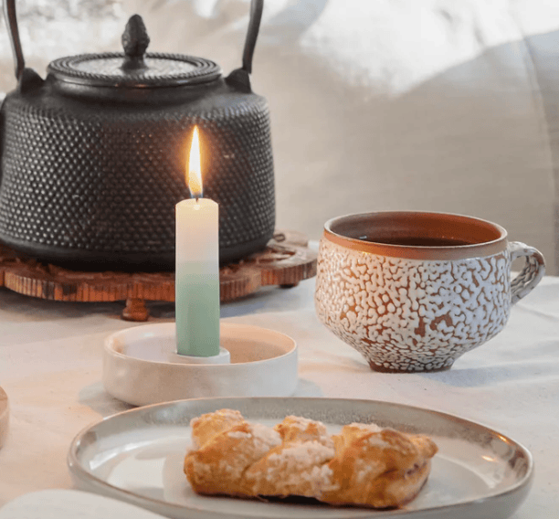 Each Mindful Moment Mini Taper burns 1 inch per hour. They are smokeless and dripless, fragrance-free, and arrive in plastic-free packaging. The tapers are hand-dipped right here in the US